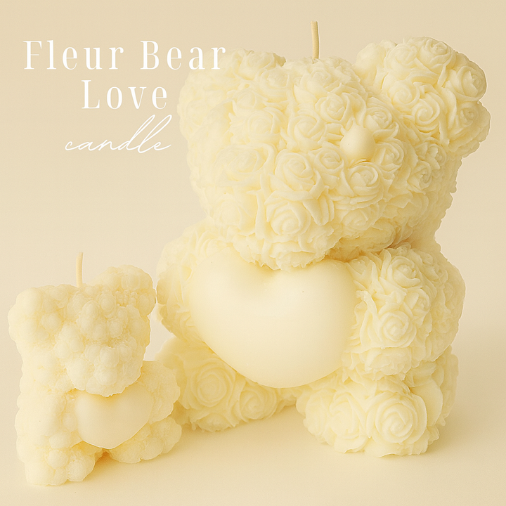 Available in various sizes, the Fleur Bear Love Candle makes for a stunning centerpiece, shelf accent, or gift for someone special.